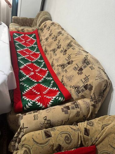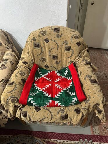 Диван с креслами+ковер. требуется небольшая реставрация ткани на диване если реклама висит, значит актуально.И перестаньте писать,и спрашивать.Цена окончательно,раздельно не продается.Все в комплекте7 000 KGS