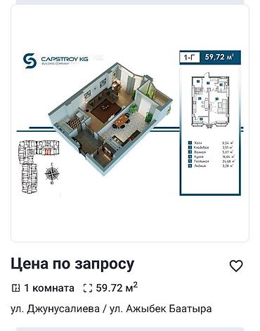 🔥Срочно продаётся просторная 1-комнатная квартира (ПСО) 59,72м² в ЖК «Агат» от застройщика «Capstroy kg», в престижном районе Ак-Кеме (Старый Аэропорт)