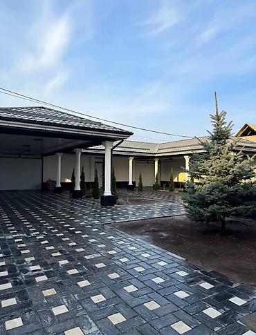 📌Огражденный участок с мощением по всему двору: темная плитка с светлыми вставками, широкая подъездная дорожка