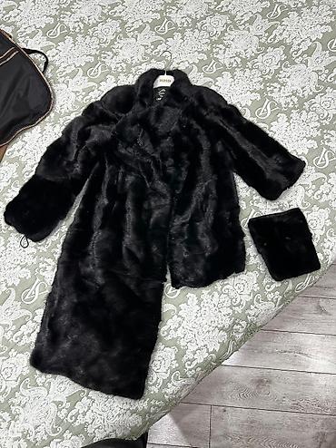 Шуба из тёмно-серого меха (норка), классическая длина ниже колена