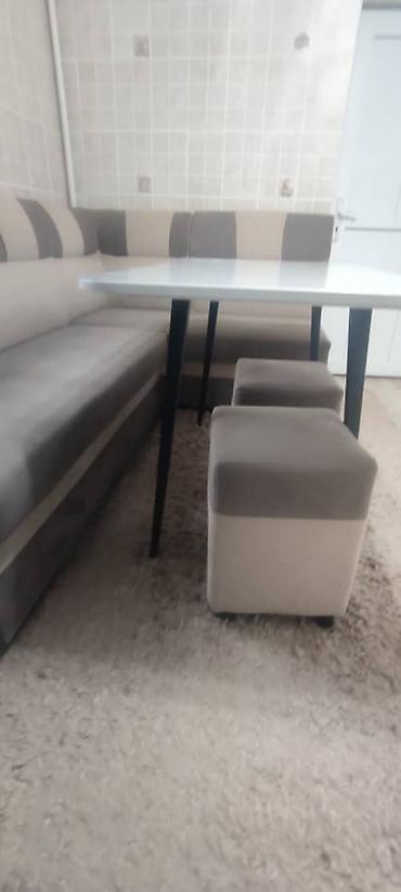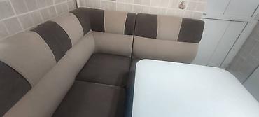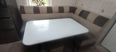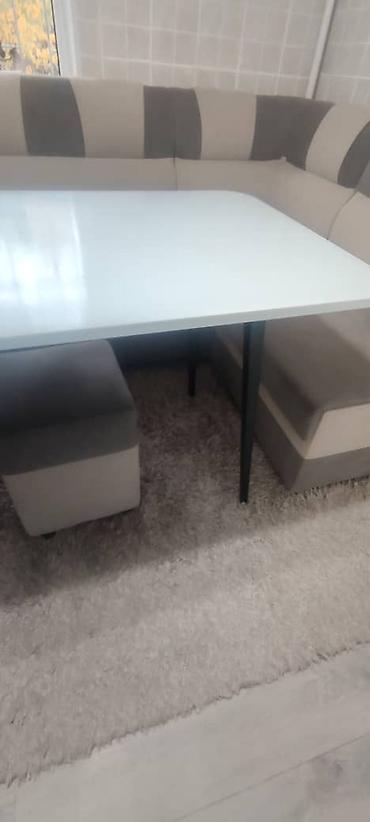 Срочно продается угловой диван(размер 147 см*215 см) с 4 пуфиками и со столом( размер125 см*75 см). Пользовались 6 месяцев. Состояние идеальное .За все 25000 сом.