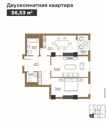 2 комнаты, 57 м², Элитка, 11 этаж, Готовая ПСО (под самоотделку)