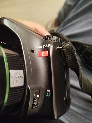 Цифровая зеркальная камера Pentax черного цвета с объективом и