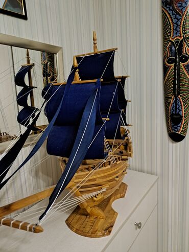 Деревянный декоративный парусник на подставке - Материал: натуральное