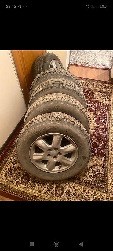 Комплект из 4 легкосплавных дисков с шинами. - Диаметр дисков: ориентировочно R15 (визуально по посадочному диаметру шин). - Посадочные отверстия: 5 шпилек (5×? – точный шаг не указан). - Дизайн: ...