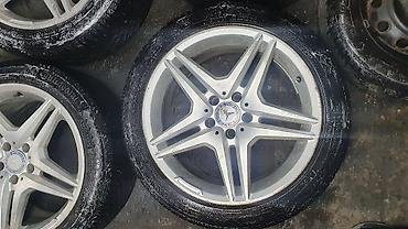 Продаю комплект дисков размером 235/50 R18. Диск серебристого цвета с пятью спицами и декоративными болтами по окружности. Шина Continental, подходит для использования на легковом автомобиле. Проте...