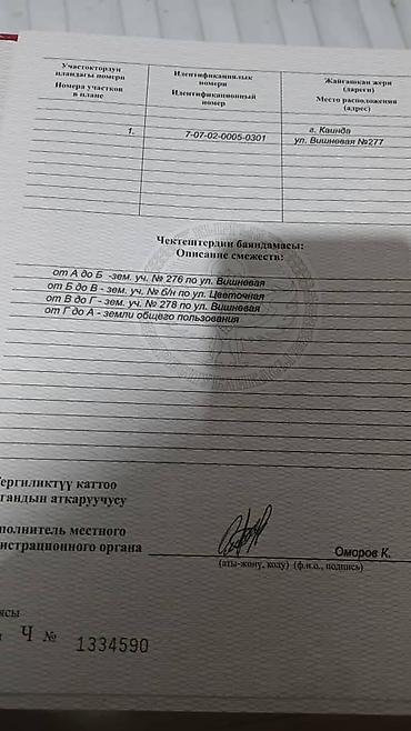 Ат-башыдан участок сатылат 7 соток уй салганга проект боюнча мектеп садике жакын аралыкта трансформация берилген шашылыш турдо документ таза жана так сразу оформления кызыл китеп бар баасы 500мин с...