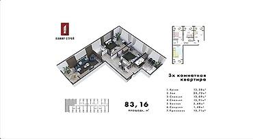 3 комнаты, 83 м², Элитка, 7 этаж, Готовая ПСО (под самоотделку)