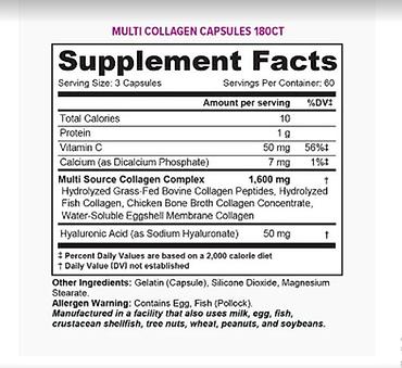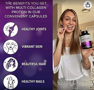 мультиколлагеновые капсулы содержат 5 типов коллагена и дополнительные ингредиенты для волос, кожи и ногтей