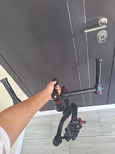 Профессиональный стабилизатор для камер DJI Ronin M, предназначенный для создания плавных и стабильных видеоматериалов. Оснащен трехосевой стабилизацией, обеспечивающей компенсацию движений по всем направлениям. Конструкция включает верхнюю ручку для удобства переноски и управления, а также две боковые ручки для дополнительной поддержки и комфорта при съемке с разных ракурсов. Интегрированная система балансировки позволяет быстро настроить стабилизатор под различные модели камер. Идеально подходит для кинопроизводства, видеоблогинга и профессиональной видеосъемки, где требуется высокая стабильность изображения.