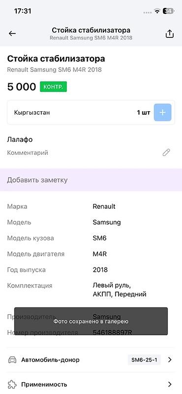 - Для Renault Samsung SM6, двигатель M4R, год 2018