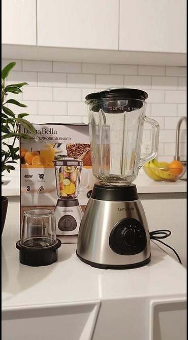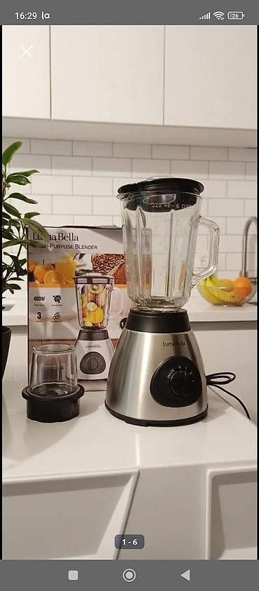 Подходит для коктейлей, смузи, соусов, супов-пюре и помола сухих продуктов. Комплект: моторный блок, стеклянный кувшин с крышкой, мельничка, сетевой шнур, коробка.