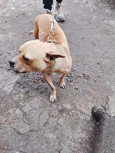 Порода: собака среднего размера, типаж стаффорд/бультерьер. Окрас