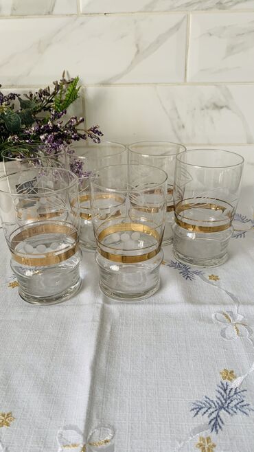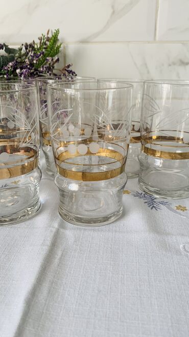Продаю стаканы , стекло , емкость 300 мл, отделка напыление под золото для сока, воды, коктейлей и т.п., количество 6 штук, цена за 6 шт. 900 сом стаканы 200 мл за четыре шт цена 400 сом .