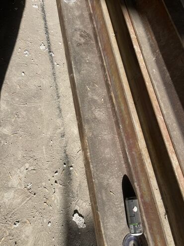 Стальные швеллеры/двутавровые балки для строительных работ. Характеристики по замерам на фото: - Длина каждой балки: около 4,5 м (рулетка показывает ~450 см). - Ширина полки: порядка 5см. - Высота...