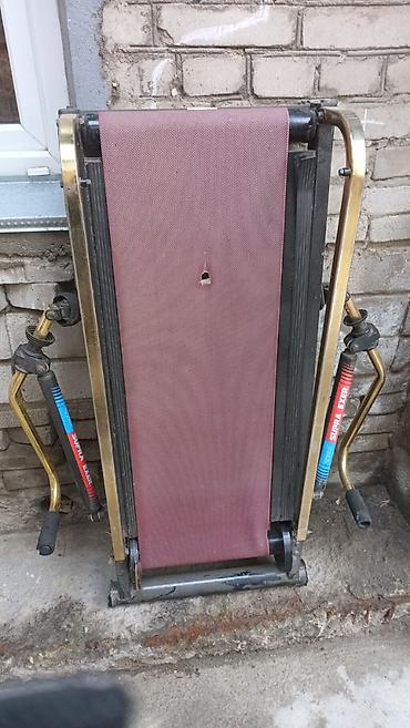 Старая беговая дорожка механическая с тренажёром. на полотне есть дырка мелкая по центру не мешает бегать и тренажёры для рук работают.