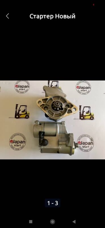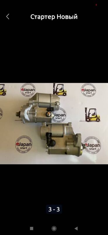 - Подходит для техники японских производителей (на фото — брендовая подложка Japan Start и сравнение двух модификаций). Конструктивно соответствует стартеру для двигателей небольшого/среднего объёма, применяемых на вилочных погрузчиках.