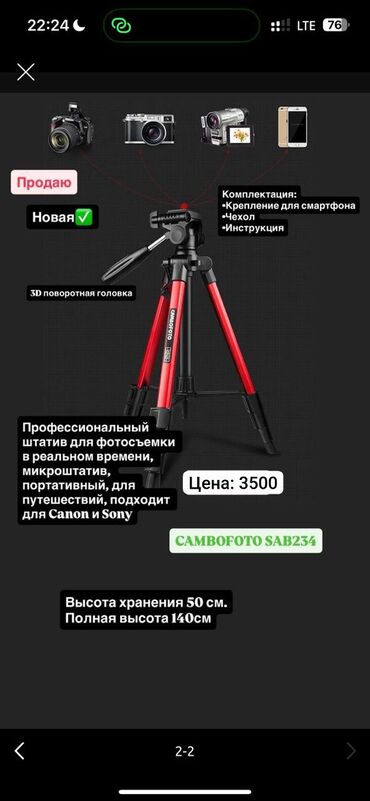 Профессиональные штативы для фото- и видеосъёмки Модель 1: CAMBOFOTO