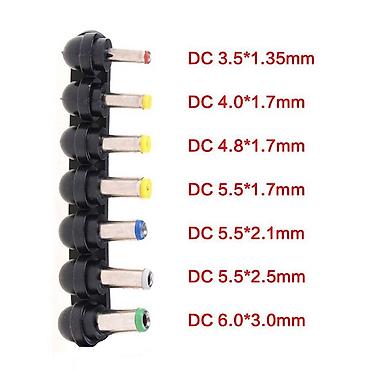 В комплекте 7 универсальных насадок - штекеров постоянного тока для наиболее распространенных ноутбуков, нетбуков и ультрабуков.