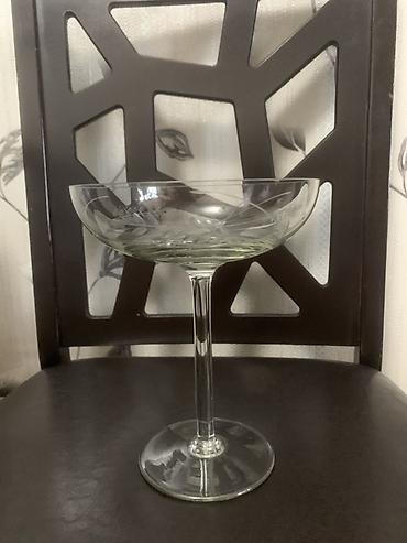 - Форма: широкая неглубокая чаша на тонкой высокой ножке, круглая устойчивая ножка-основание.
