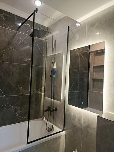 Стеклянная перегородка для ванны с черным профилем