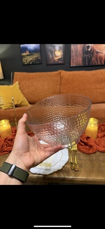 Продам б/у Салатник винтажный,глубокий с геометрическим декором,розовое стекло,СССР. Высота 11,5 см . Диаметр 20 см.Есть внутри на дне царапинки. Писать в whatsapp.