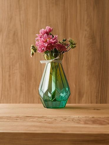 Стеклянная ваза для цветов - Материал: стекло. - Форма: гранёный