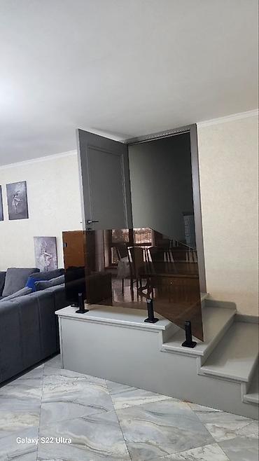 - Материал: закалённое тонированное стекло (бронзовый оттенок), цельное полотно без перемычек.