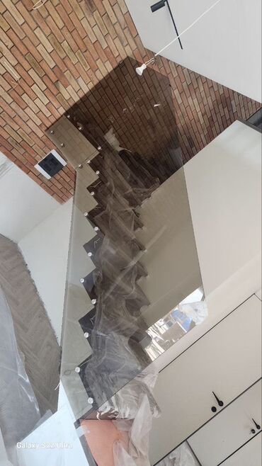Настенное декоративное панно из зеркал в современном геометрическом стиле. - Комплект: центральное большое панно и две узкие вертикальные панели по бокам. - Дизайн: фасетные зеркальные элементы, с...