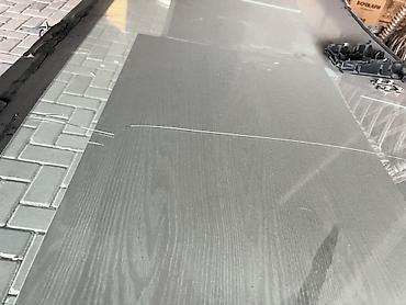 - На фото видна длинная трещина по поверхности; по кромке — остатки герметика после демонтажа