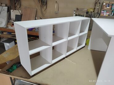 Торговый стеллаж пристенный - Конструкция: металлический каркас с перфорированными стойками и поперечными связями, навесные полки из ЛДСП. - Цвет: белый. - Конфигурация: несколько секций в линию, ...