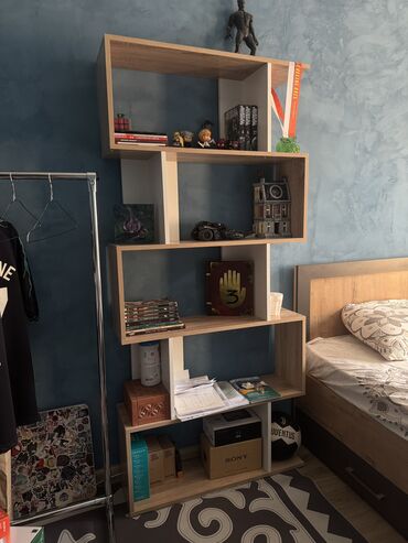 Настенная модульная система полок, современный минимализм. - Комплектация: два горизонтальных блока с открытыми нишами и центральными перемычками, нижний уровень дополнен длинной нижней полкой-осн...
