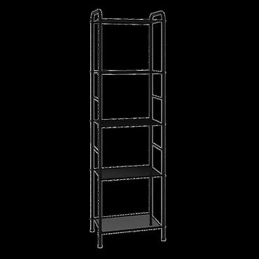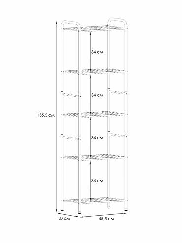 Система хранения имеет 5 металлических сетчатых полок, каждая из которых выдерживает нагрузку до 8 кг.