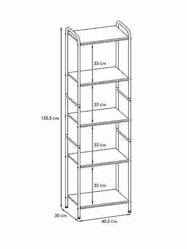 Система хранения имеет 5 полок из лдсп, каждая из которых выдерживает нагрузку до 8 кг.