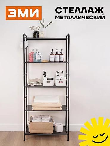 Система хранения имеет 5 металлических сетчатых полок, каждая из которых выдерживает нагрузку до 8 кг.
