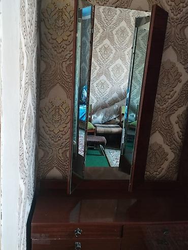 - Туалетный столик с раскладным зеркалом-трюмо (три створки) и полками/нишей за зеркалами.