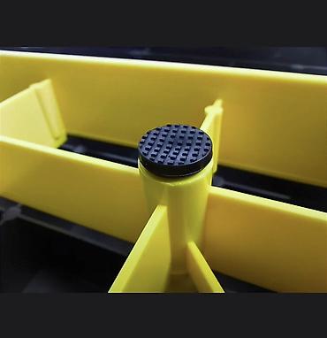 - Материалы: ударопрочный пластик, устойчивый к деформации; нижние накладки, уменьшающие скольжение и шум.
