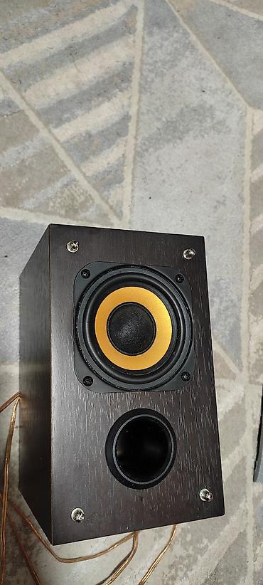 - 2 акустические колонки в деревянном корпусе (фронт фазоинвертора на лицевой панели). НЧ/СЧ-динамик с золотистой диффузорной вставкой, съёмная защитная сетка.