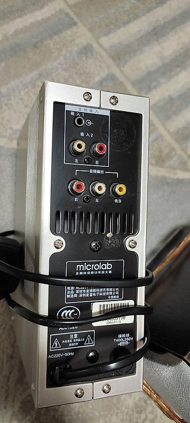 В комплекте на фото: 2 колонки, внешний усилитель Microlab, сетевой кабель, акустические провода.