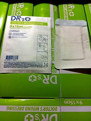 Бренд: DR’s+ Doctor’s Wound Dressing. Цвет упаковки — зелёный/белый.