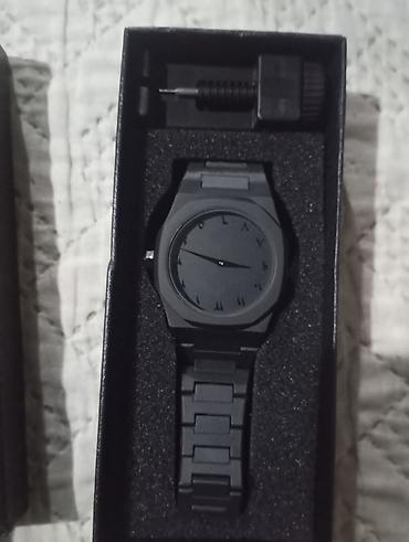 - Циферблат: однотонный чёрный, минималистичный дизайн; отметки часов выполнены в виде римских цифр