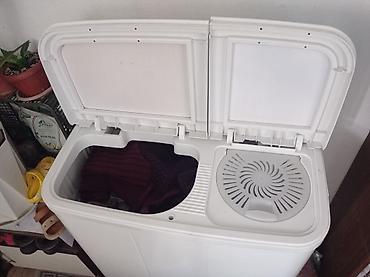 - Два отделения: слева бак для стирки, справа центрифуга для отжима.