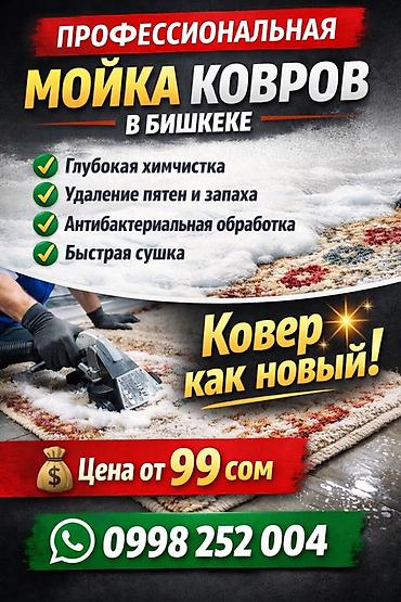 Стирка ковров в Бишкеке 1 кв/метр- 120 сом... ..жб Качественная стирка ковров с вывозом и доставкой. Работаем более 10 лет на рынке – пунктуальны, всегда соблюдаем технологии, используем безопасные...
