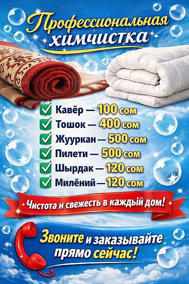 СУПЕР АКЦИЯ связи священным месяцам Рамазан!!!! Стирка ковров заберём доставим бесплатно. Стирка паласов и пледов шырдаков м2 80сом 2-3 дня сом вывоз доставка бесплатно чистка ковров химчистка ков...