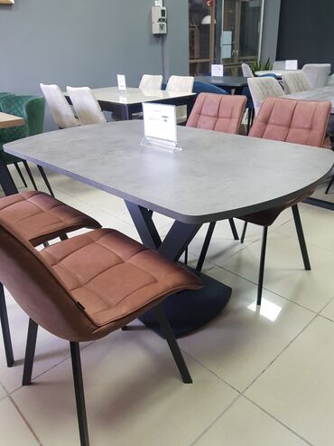 Кухонные столы на металлических опорах - Форма столешницы: прямоугольная с мягко скруглёнными углами — удобно для семейных обедов и компактного размещения у стены. - Варианты отделки столешницы: б...