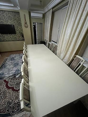 Обеденный гарнитур в классическом стиле Состав: - Большой прямоугольный стол с мягко скругленными углами - 8 стульев с высокой спинкой Дизайн и материалы: - Цвет столешницы и каркаса: молочный/сл...