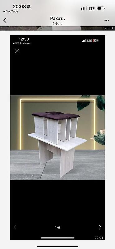 Здравствуйте!!! 🥳У нас лучшие столы-табуреты в Бишкеке. 📈100% гарантия качества. Размер (стола) ⬇️ ✅️Длина: 108 см. ✅Высота: 65 см ✅️Количество табуретов: 4 💰Стол только с 4 табуретками: 3700 с...