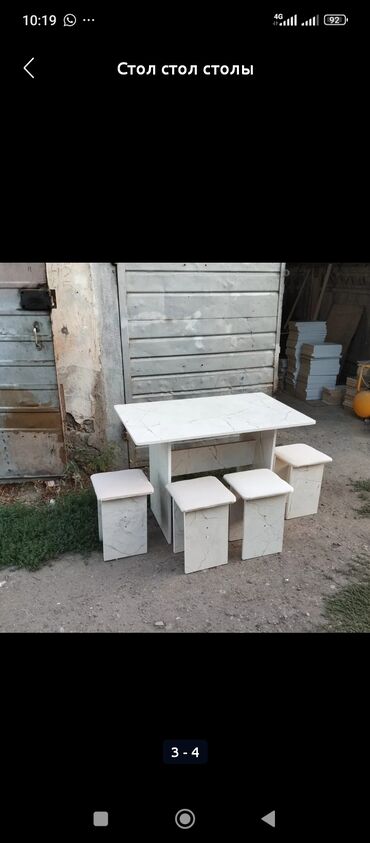 Обеденный комплект стол + табуреты - Комплект: прямоугольный стол и 4 табурета. - Материал: ЛДСП с имитацией камня/мрамора, кромки обработаны. - Столешница прямоугольная, устойчивая опора-тумба. -...