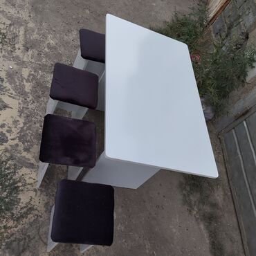Кухонный обеденный комплект: стол + 4 пуфа - Стол прямоугольной формы с закруглёнными углами. - Столешница с рисунком «белый мрамор», гладкая, легко очищается. - Основание стола в едином стиле с д...