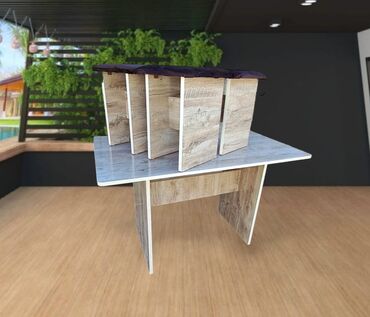 Набор компактной мебели в современном стиле с имитацией мрамора и дерева. Подходит для кухни, кафе, зоны ожидания или домашнего кабинета. Состав и особенности: - Обеденная группа: прямоугольный ст...